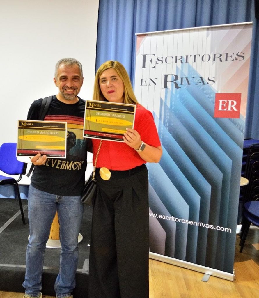 Ganadores del Concurso de nanorrelatos: Amanda Parreño, Nuria Rodríguez Fernández y Jesús Lahera,